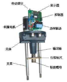 其電(diàn)動執行(xíng)器(qì)主要是由相互隔離的電(diàn)氣部分和(hé)傳動部分組成,電(diàn)機作(zuò)為(wèi)連接兩個(gè)隔離部分的中間(jiān)部件。電(diàn)機按控制(zhì)要求輸出轉矩,通(tōng)過多(duō)級正齒輪傳遞到梯形絲杆上(shàng),梯形絲杆通(tōng)過螺紋變換轉矩為(wèi)推力。因此梯形螺杆通(tōng)過自鎖的輸出軸将直線行(xíng)程傳遞到閥杆。執行(xíng)機構輸出軸帶有(yǒu)一個(gè)防止傳動的止轉環,輸出軸的徑向鎖定裝置也可(kě)以做(zuò)動位置指示器(qì)。輸出軸止動環上(shàng)連有(yǒu)一個(gè)旗杆,旗杆随輸出軸同步運行(xíng),通(tōng)過與旗杆連接的齒條闆将輸出軸位移轉換成電(diàn)信号,提供給智能控制(zhì)闆作(zuò)為(wèi)比較信号和(hé)閥位反饋輸出。同時(shí)執行(xíng)機構的行(xíng)程也可(kě)由齒條闆上(shàng)的兩個(gè)主限位開(kāi)關開(kāi)限制(zhì),并由兩機械限位保護。