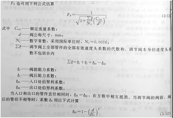 Fp是流過裝有(yǒu)附接管件調節閥的流量與不裝有(yǒu)附接管件時(shí)的流量之比。可(kě)以通(tōng)過試驗确定Fp,其壓差值以不出現阻塞流為(wèi)限。兩種安裝情況的流量均在不産生(shēng)阻塞流的同一試驗條件下測得(de)。
