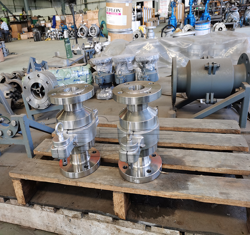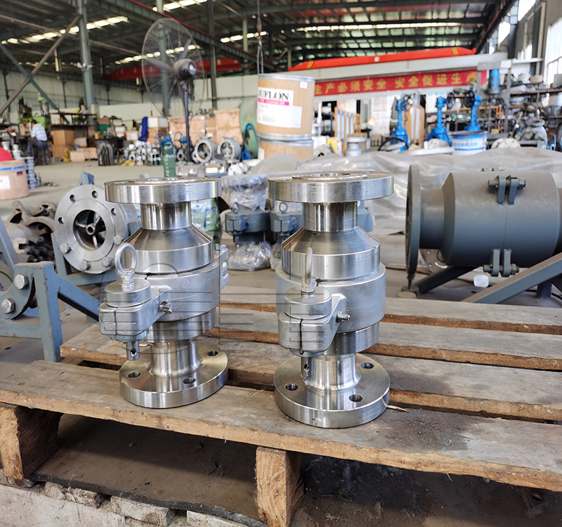 HCPKY低(dī)溫拉斷閥連接方式有(yǒu)兩種(法蘭/內(nèi)螺紋),鶴管裝車(chē),總體(tǐ)由兩個(gè)單向閥、夾緊機構、拉斷機構三部分組成單向閥由閥體(tǐ)、閥瓣、主密封圈、支架等組成;夾緊機構由左夾闆、右夾闆、連接件等組成;拉斷機構由固定調節螺栓、放松調節螺母、拉斷銷、安全螺栓、鋼絲繩等組成。在兩個(gè)半殼體(tǐ)上(shàng)分别裝配有(yǒu)一個(gè)截止閥,以便能在觸發情況下安全地對管路的斷開(kāi)處(分離的聯接半體(tǐ))進行(xíng)封閉。兩個(gè)受彈力作(zuò)用的截止閥在工作(zuò)狀态下相互支撐,并保持管路截面敞開(kāi)。 同時(shí),巧妙的流動性設計(jì)可(kě)确保的通(tōng)過截面。 斷開(kāi)時(shí)閥門(mén)的相互支撐作(zuò)用消失,兩個(gè)閥門(mén)會(huì)迅速封閉打開(kāi)的截面。