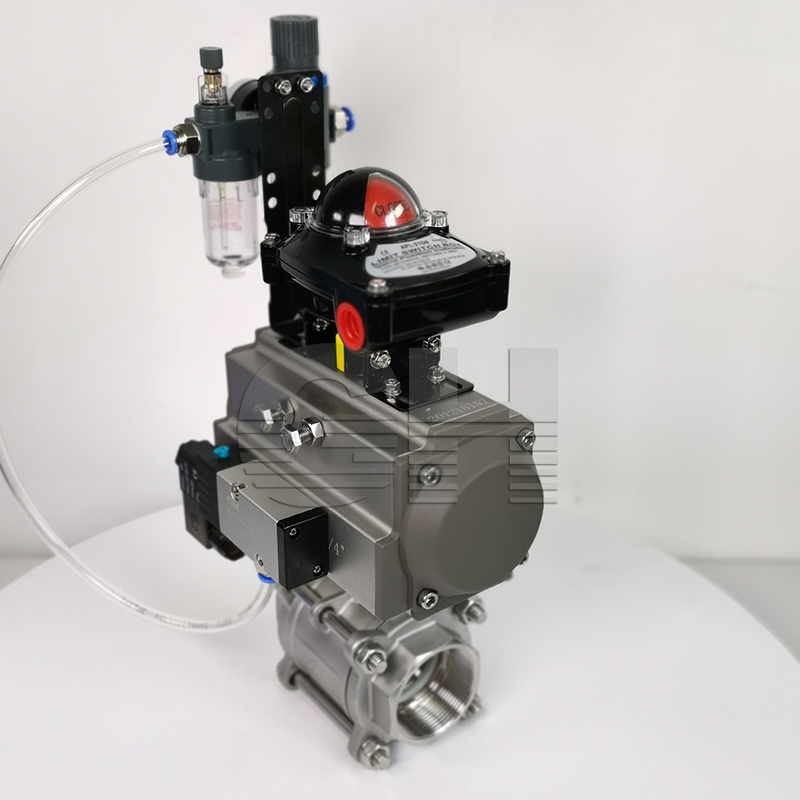 氣動三片式球閥是由三片式球閥與氣動執行(xíng)器(qì)連接組成,采用三段式結構,由左右兩片閥體(tǐ)與中間(jiān)閥體(tǐ)組成,再用螺栓連接成一體(tǐ),具有(yǒu)拆裝簡單維修方便等優點。氣動三片式球閥根據作(zuò)用形式分為(wèi)雙作(zuò)用和(hé)單作(zuò)用,單作(zuò)用形式具有(yǒu)彈簧複位功能,可(kě)在遇到故障或沒有(yǒu)氣源時(shí),自動歸位到開(kāi)啓或關閉的狀态。氣動三片式球閥通(tōng)過壓縮空(kōng)氣為(wèi)動力源,帶動閥芯做(zuò)0-90度的來(lái)回轉動,即可(kě)實現對閥門(mén)的開(kāi)關動作(zuò),在各個(gè)行(xíng)業得(de)到廣泛應用,是常見的控制(zhì)閥門(mén)。