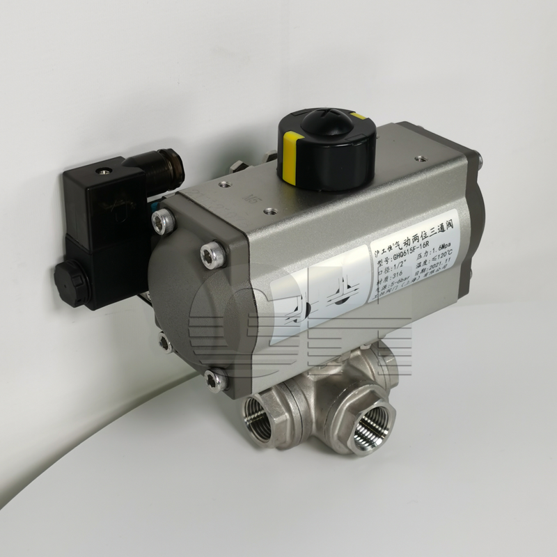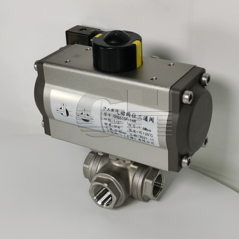 GHQ615F-16P內(nèi)螺紋氣動三通(tōng)球閥 氣動三通(tōng)內(nèi)絲球閥