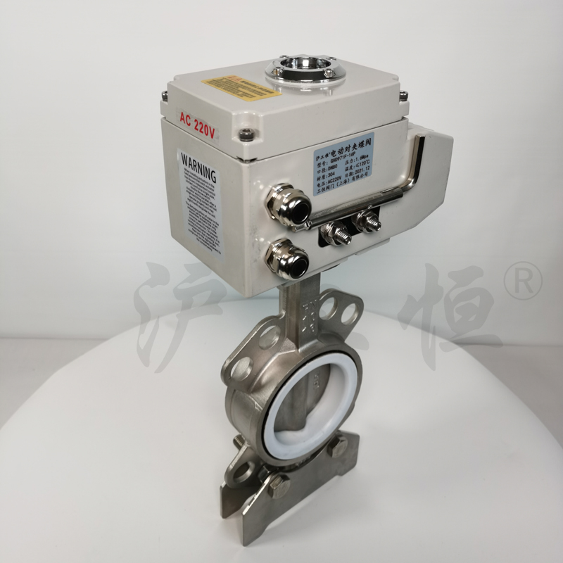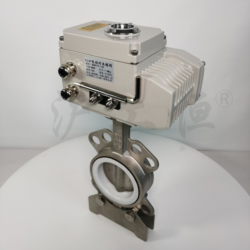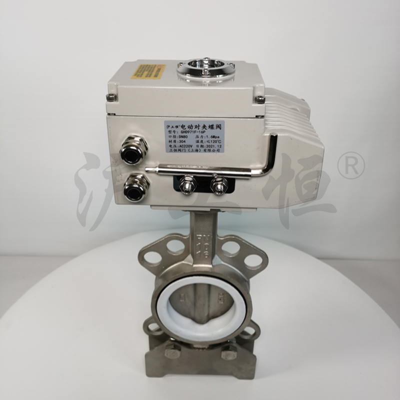 GHD971F-16P不鏽鋼四氟電(diàn)動蝶閥 防腐蝕軟密封對夾