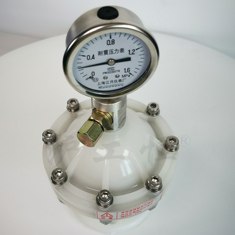隔膜式脈沖阻尼器(qì)又名脈動阻尼器(qì)、脈動緩沖器(qì)、空(kōng)氣室、均流器(qì)、蓄能器(qì)等。脈沖阻尼器(qì)是消除管路脈動的常用元件,是計(jì)量泵必須配備的附件。能夠平滑由柱塞泵、隔膜泵等容積泵引起的管路脈動及消除系統的水(shuǐ)錘現象,它由耐腐蝕的隔膜或氣囊将氣體(tǐ)與管路中的液體(tǐ)隔離,通(tōng)過氣室容積的變化平滑管路脈動,對受壓液體(tǐ)的能量進行(xíng)儲存和(hé)釋放。