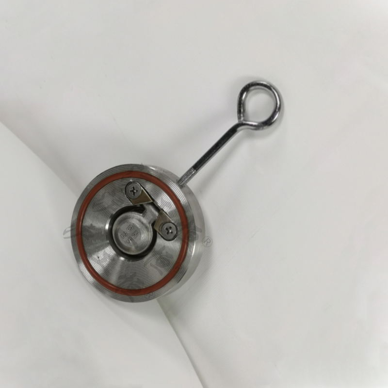 H74W對夾單瓣式止回閥采用內(nèi)裝搖臂旋啓式結構,閥瓣繞轉軸作(zuò)旋轉運動,靠介質流動推開(kāi)閥瓣介質通(tōng)過,當介質倒流時(shí),閥瓣靠自身重量以及倒流介質的作(zuò)用,關閉閥門(mén)。