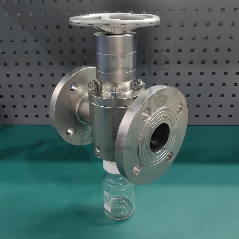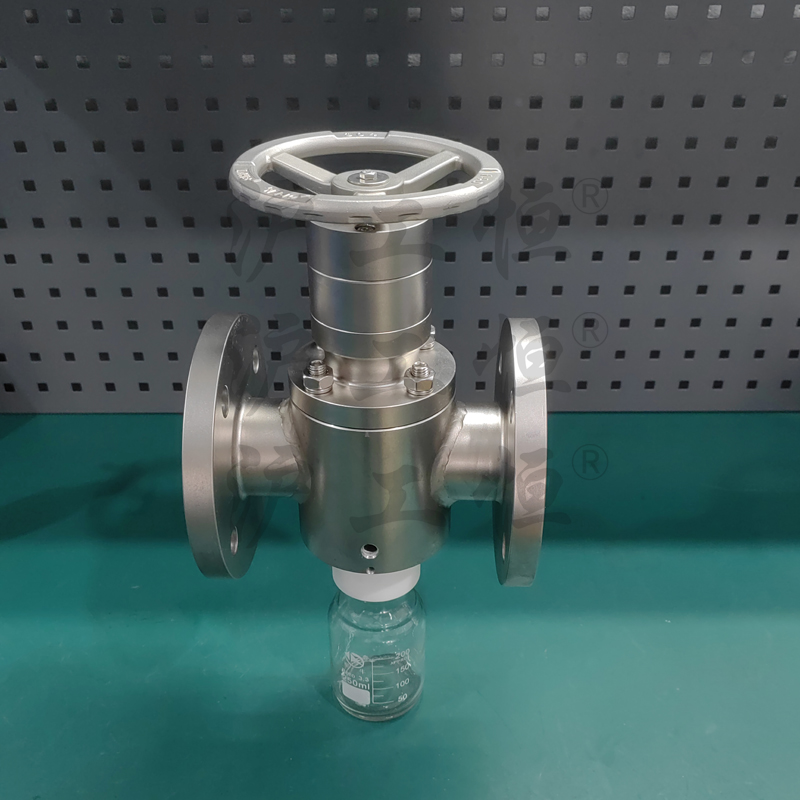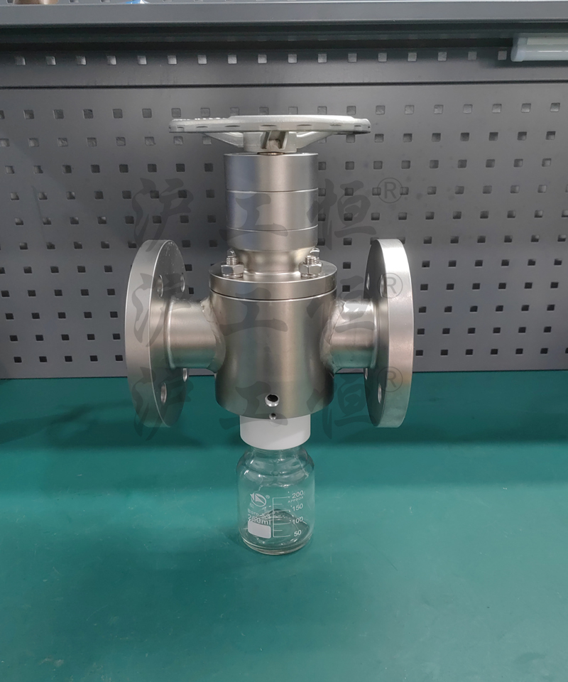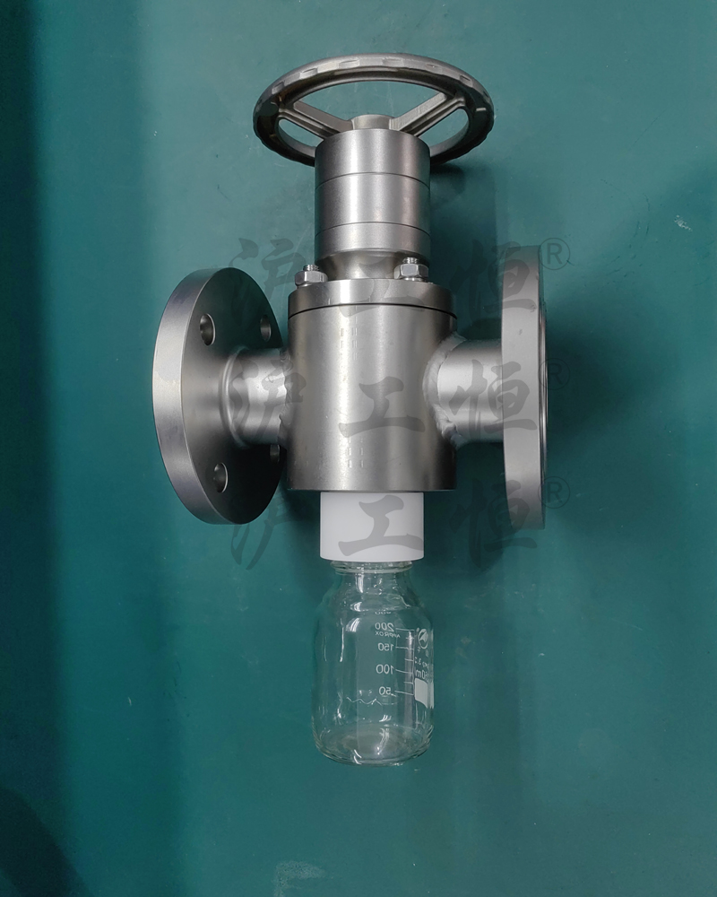 無滞留取樣閥解決了現有(yǒu)取樣閥的複雜結構,無滞留取樣閥主要有(yǒu)閥體(tǐ)、閥芯、閥杆、閥座、取樣瓶組成,取樣瓶為(wèi)可(kě)拆卸設計(jì),試樣通(tōng)過取樣口進入取樣瓶內(nèi),避免污染試樣,流道(dào)無流阻、無滞留設計(jì),不影(yǐng)響流量,閥杆通(tōng)過手輪、電(diàn)動執行(xíng)機構、氣動執行(xíng)機構旋轉帶動閥杆及閥芯,閥芯上(shàng)下提拉,可(kě)精确控制(zhì)流量,實現試樣進入取樣瓶內(nèi),取樣瓶可(kě)選透明(míng)和(hé)避光兩種,本取樣閥廣泛應用在制(zhì)藥、化工、食品行(xíng)業