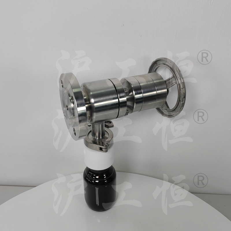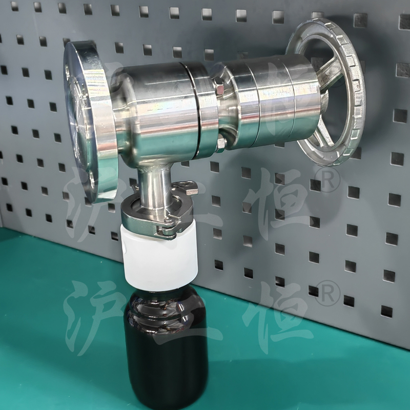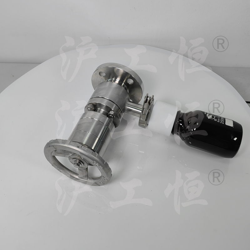 GHCSZXQYF-16帶有(yǒu)氮氣吹掃口在線取樣閥用于管線在線取樣,取樣介質真實, GHCSZXQYF-16帶有(yǒu)氮氣吹掃口在線取樣閥主要用于取粘稠介質,因粘稠介質的流動性差,特在取樣閥的出料口增設氮氣吹掃口,可(kě)将粘稠介質吹掃至取樣瓶內(nèi),提高(gāo)再次取樣的準确性,GHCSZXQYF-16帶有(yǒu)氮氣吹掃口在線取樣閥主要有(yǒu)閥體(tǐ)、閥芯、閥杆、閥座、排氣口,氮氣吹掃口、止回閥、吹掃球閥、取樣瓶組成,取樣瓶為(wèi)可(kě)拆卸設計(jì),試樣進入取樣瓶內(nèi),配套的瓶蓋可(kě)将取樣瓶密封,避免污染試樣,取樣閥流道(dào)無滞留、無流阻設計(jì),不影(yǐng)響流量,閥杆通(tōng)過手輪旋轉帶動閥杆及閥芯,閥芯上(shàng)下提拉,可(kě)精确控制(zhì)流量,精确控制(zhì)取樣量,使試樣進入取樣瓶內(nèi),取樣瓶可(kě)選透明(míng)和(hé)避光兩種,本取樣閥廣泛應用在制(zhì)藥、化工、食品行(xíng)業。