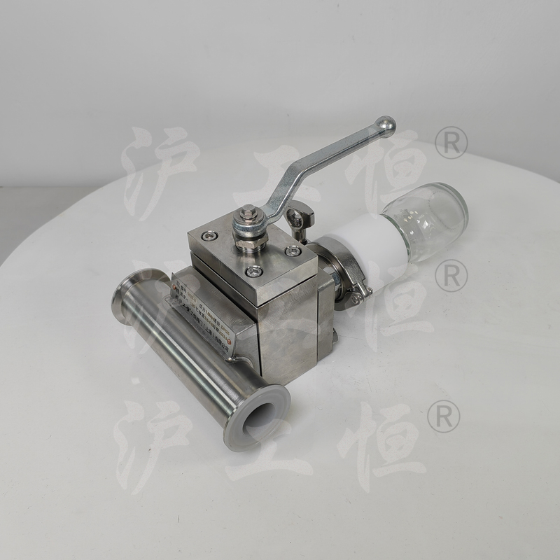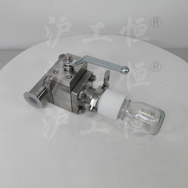 GHQYF-16 快裝式卡盤取樣閥閥主要用于取易揮發介質,介質不可(kě)接觸空(kōng)氣,GHQYF-16 快裝式卡盤取樣閥主要有(yǒu)閥體(tǐ)、閥芯、閥杆、閥座、密閉針、取樣瓶組成,取樣瓶為(wèi)可(kě)拆卸設計(jì),試樣通(tōng)過密閉針進入取樣瓶內(nèi),橡膠可(kě)将取樣瓶密封,避免污染試樣,流道(dào)無流阻設計(jì),不影(yǐng)響流量,閥杆通(tōng)過手輪、電(diàn)動執行(xíng)機構、氣動執行(xíng)機構旋轉帶動閥杆及閥芯,閥芯上(shàng)下提拉,可(kě)精确控制(zhì)流量,實現試樣進入取樣瓶內(nèi),取樣瓶可(kě)選透明(míng)和(hé)避光兩種,本取樣閥廣泛應用在制(zhì)藥、化工、食品行(xíng)業。