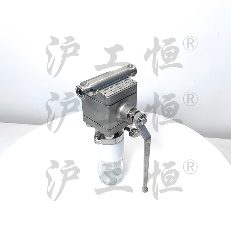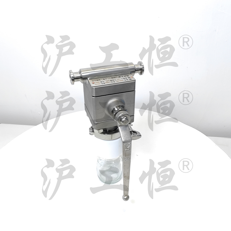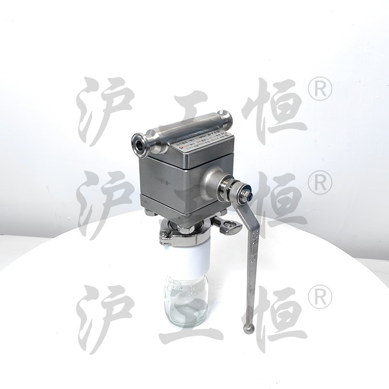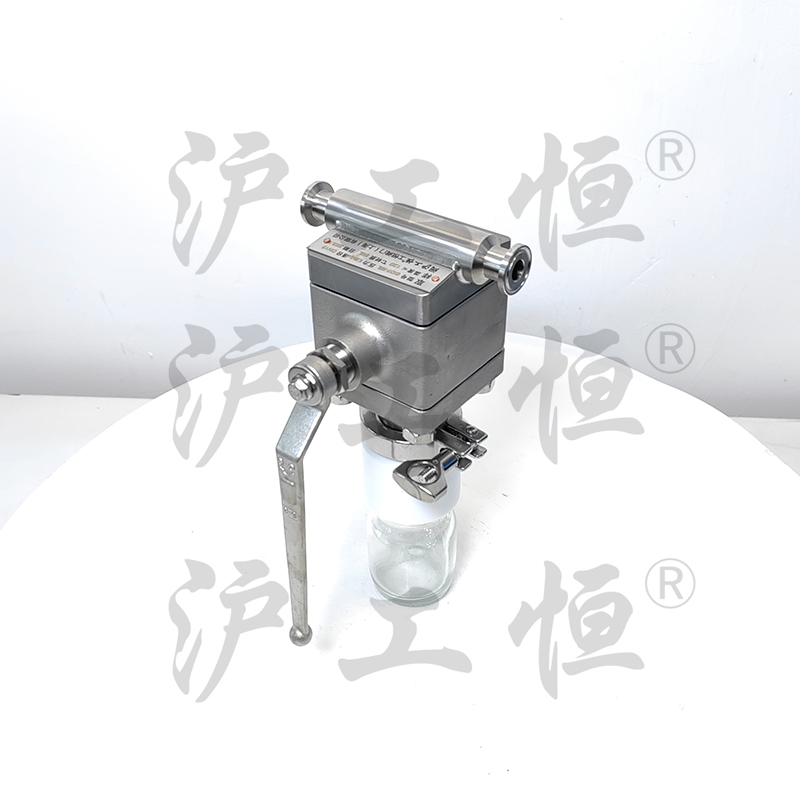 在線取樣閥解決了現有(yǒu)取樣閥的複雜結構,在線取樣閥主要有(yǒu)閥體(tǐ)、閥芯、閥杆、閥座、取樣瓶組成,取樣瓶為(wèi)可(kě)拆卸設計(jì),試樣進入取樣瓶內(nèi),可(kě)将取樣瓶密封,避免污染試樣,流道(dào)無流阻設計(jì),不影(yǐng)響流量,閥杆通(tōng)過手柄、電(diàn)動執行(xíng)機構、氣動執行(xíng)機構旋轉帶動閥杆及閥芯使試樣進入閥芯內(nèi),通(tōng)過旋轉閥芯180°實現試樣進入取樣瓶內(nèi),放樣的同時(shí),閥芯将取樣口關閉,從而做(zuò)到零洩漏及無壓取樣,不會(huì)因開(kāi)關閥門(mén)對取樣瓶造成壓力沖擊,從而保證操作(zuò)者的安全。取樣瓶可(kě)選透明(míng)和(hé)避光兩種,本取樣閥廣泛應用在制(zhì)藥、化工、食品行(xíng)業。