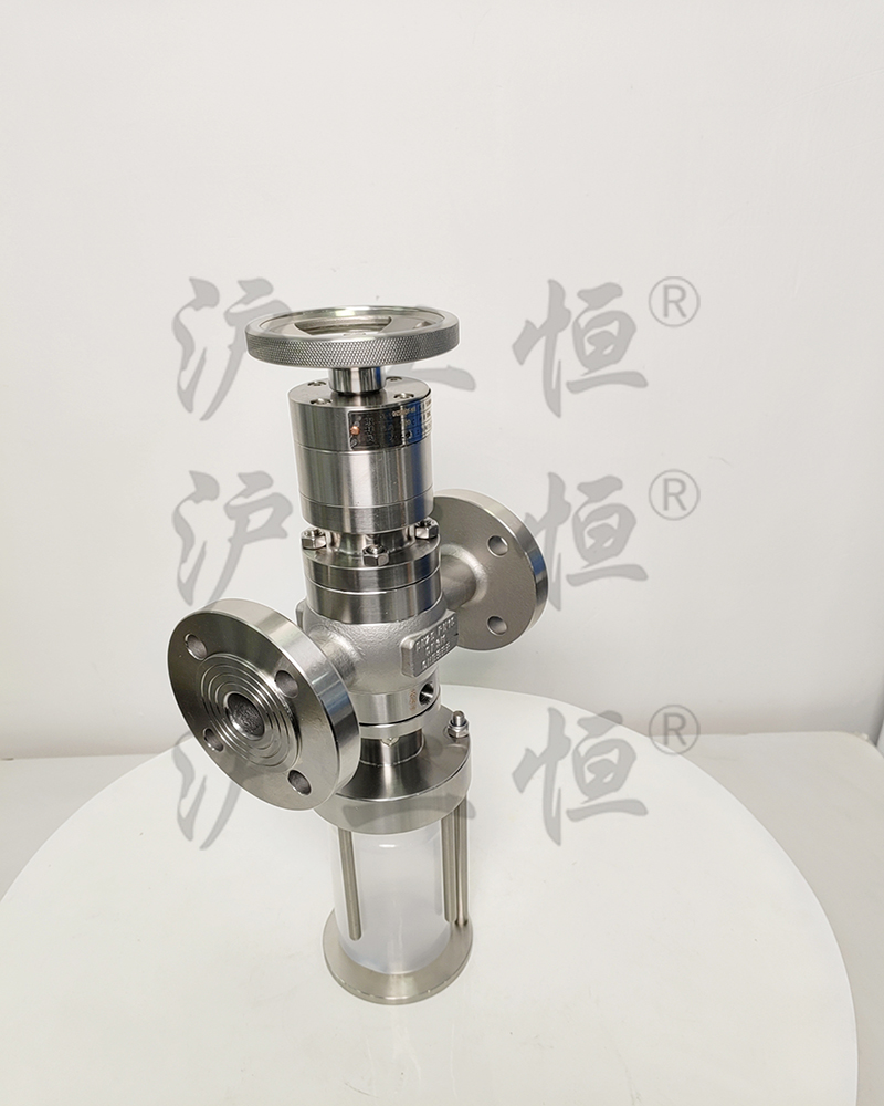 GHMBQYF-16RL-不鏽鋼密閉取樣閥-配PFA取樣瓶,解決了現有(yǒu)取樣閥的複雜結構,取樣瓶采用PFA材質,可(kě)取樣為(wèi)腐蝕性介質,GHMBQYF-16RL-不鏽鋼密閉取樣閥-配PFA取樣瓶主要有(yǒu)閥體(tǐ)、閥芯、閥杆、閥座、密閉針、帶膜片取樣瓶組成,取樣瓶為(wèi)可(kě)拆卸設計(jì),試樣從入料針進入取樣瓶內(nèi),并通(tōng)過排氣針排出壓力,使取樣瓶保持在常壓狀态,取樣瓶品裝有(yǒu)橡膠膜可(kě)将取樣瓶密封,避免污染試樣,流道(dào)無流阻設計(jì),不影(yǐng)響流量,閥杆通(tōng)過手柄、電(diàn)動執行(xíng)機構、氣動執行(xíng)機構旋轉帶動閥杆及閥芯,閥芯上(shàng)下提拉,可(kě)精确控制(zhì)流量,實現試樣進入取樣瓶內(nèi),取樣瓶可(kě)選透明(míng)和(hé)避光兩種,本取樣閥廣泛應用在制(zhì)藥、化工、食品行(xíng)業。